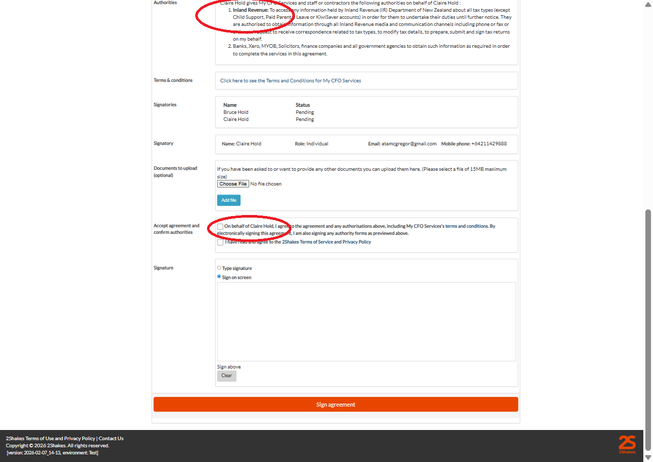 To understand how IR authorities work in 2Shakes, you first up need to understand how documents are signed. Let’s cover the main rules for when people sign in 2Shakes. If you have multiple entities (i.e. more than one client) on an Agreement: